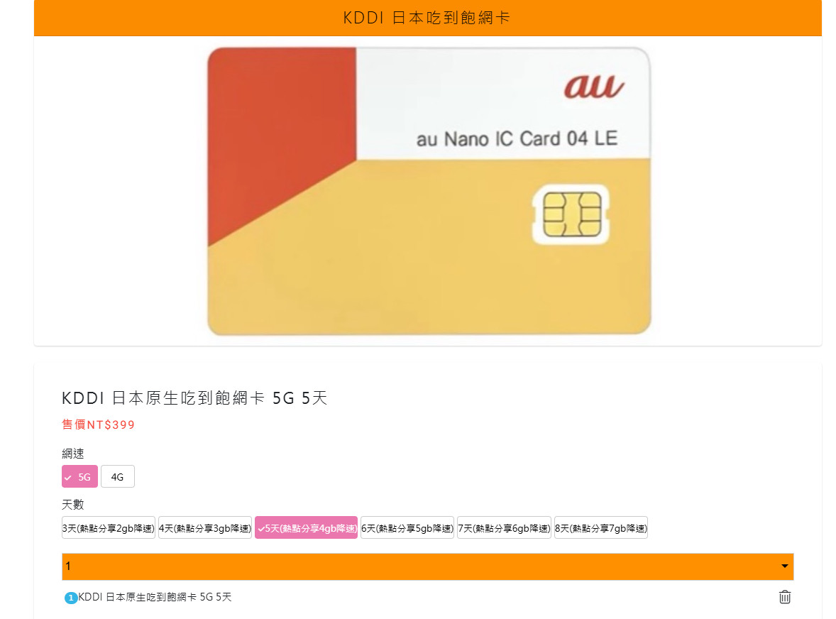 請選「KDDI(au)日本原生5G SIM卡」