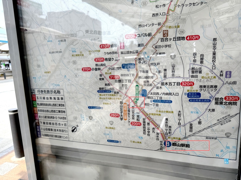 其交通是要先來到JR東北本線「郡山」駅,再搭乘往市役所方向的巴士,於「郡山市役所」下車。