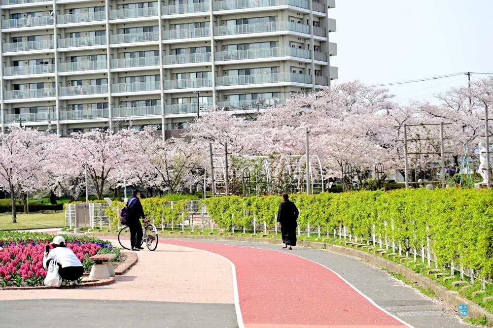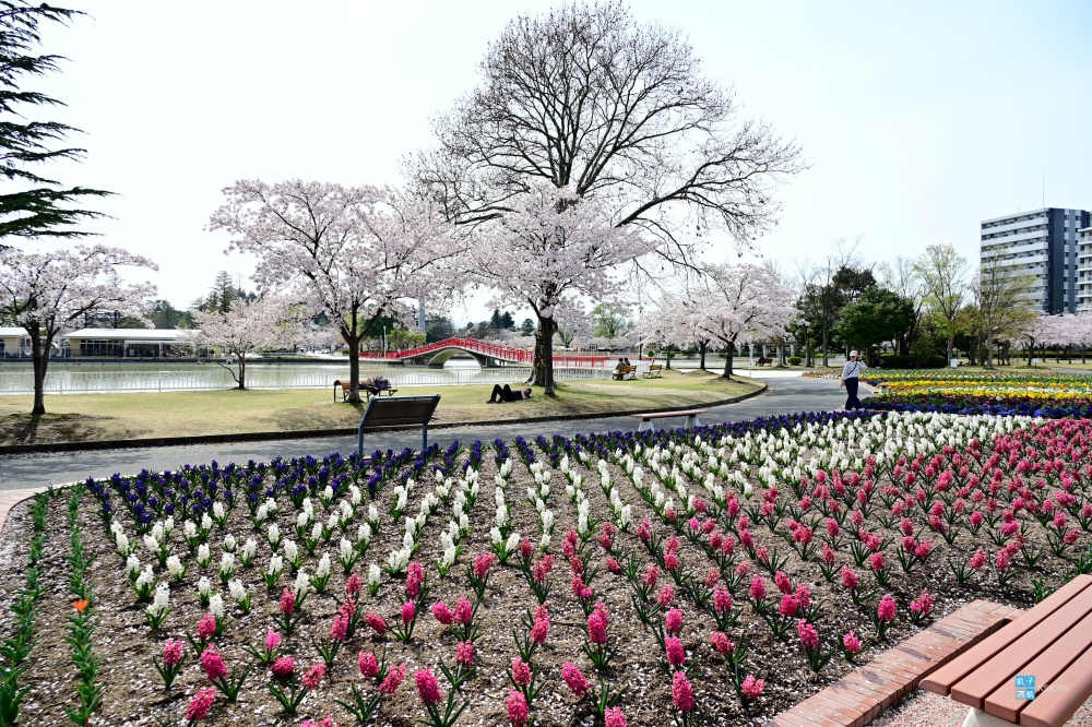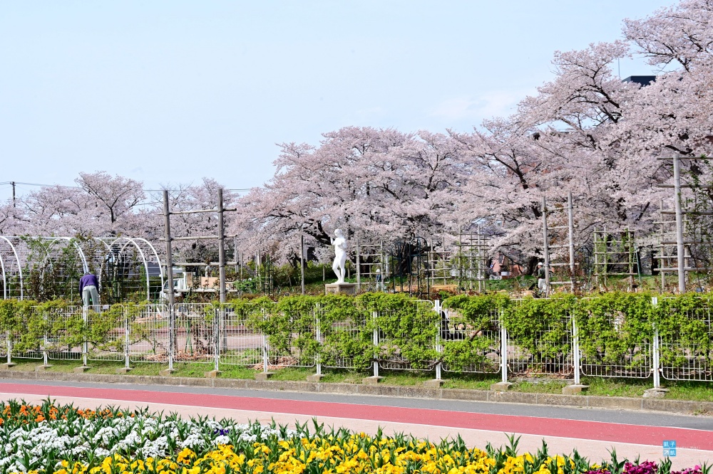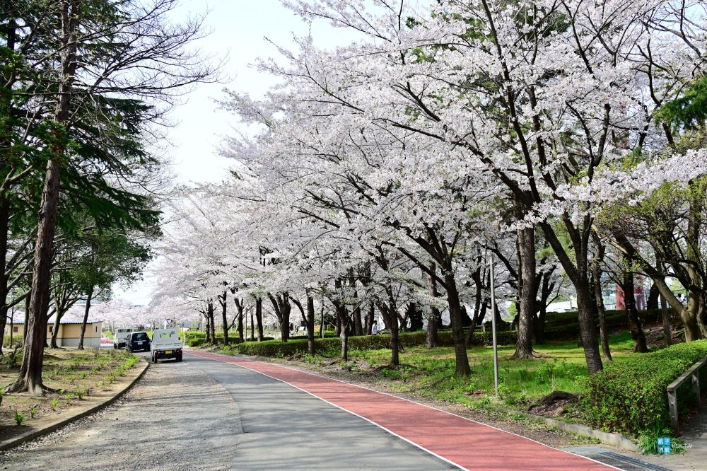 而在公園的另一邊則有著「さくら通り」,也是種滿一整排的櫻花跟各種花卉,相信在假日的時候,肯定會有許多郡山當地人來到這邊野餐賞櫻!