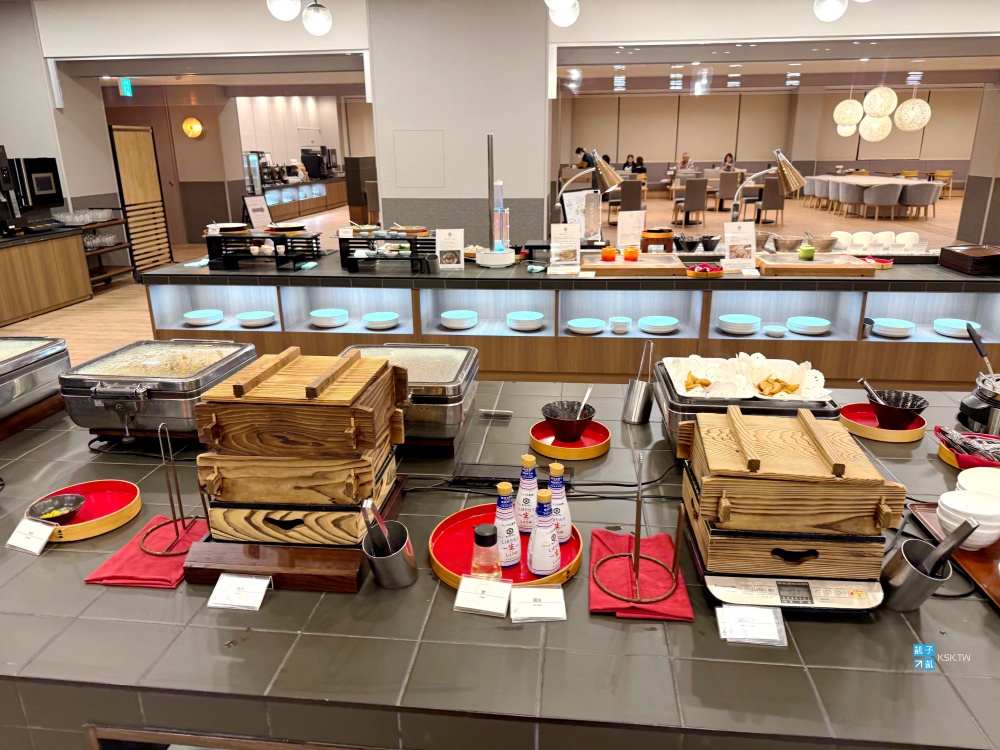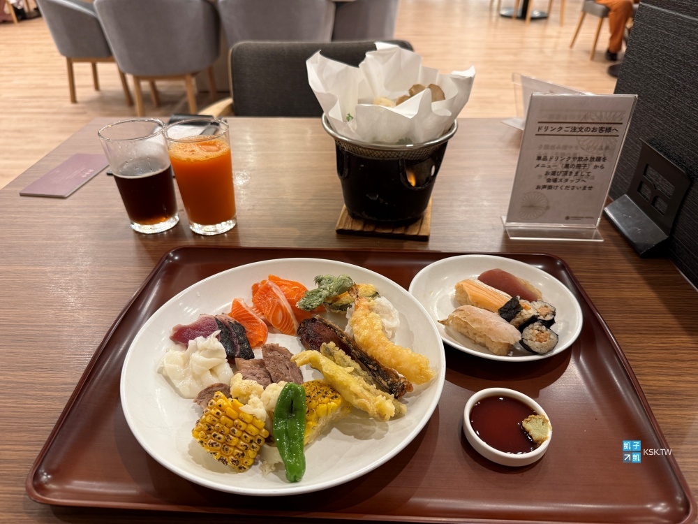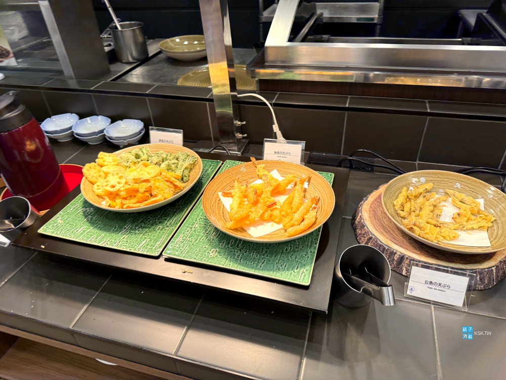 晚餐是自助Buffet型式,但看到那握壽司上面生魚片的顏色,就知道完全不行,並不是很新鮮。至於單純的生魚片方面倒是還可以,其它餐點口味算是一般般,是可以吃得飽啦,以這個住宿價位也算還可以,但真的比較少在日本溫泉旅館吃到這樣鮮度較差的生魚片。