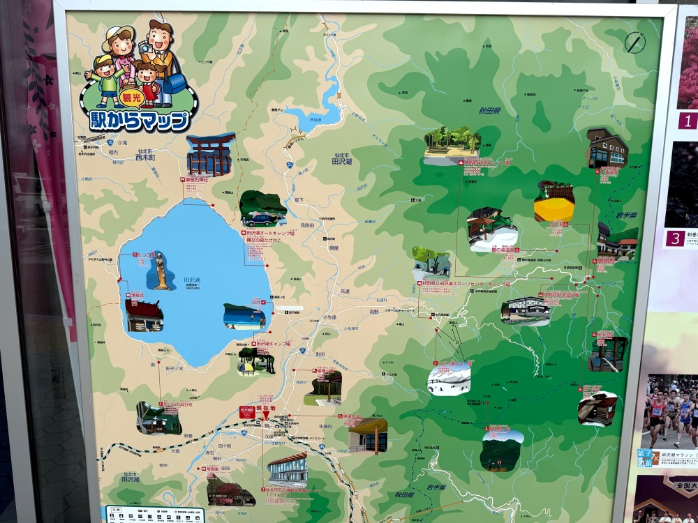 田澤湖車站,就在車站前面等車即可。