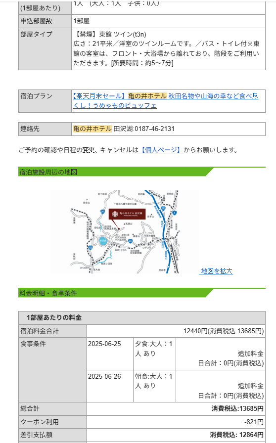 我其實也是當天才臨時訂房,有先用電話詢問飯店可否預約最後一班17:30田澤湖發的巴士到旅館,幫我查詢說還有空位,讓我可以順利搭上車。