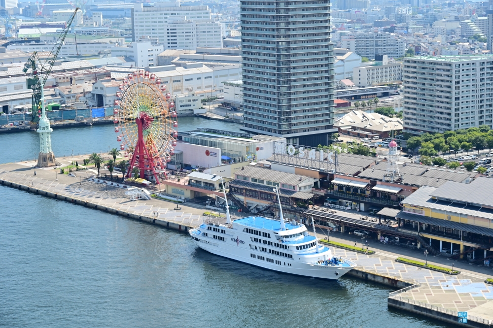 從元町站出發,步行即可抵達神戶港塔這邊。實際上走過來我覺得也要15分,是有段距離的。由於夏天天氣非常炎熱,您也可以考慮Port Bus或神戶City lopp巴士,來到「Port Tower」這區。