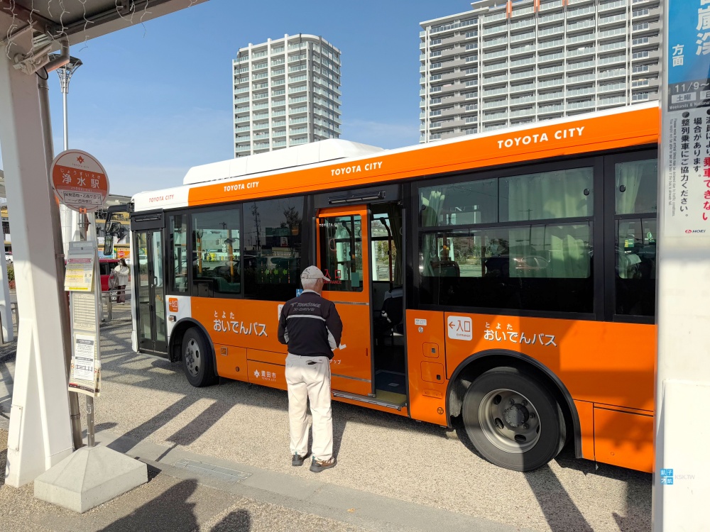 地下鉄鶴舞線「赤池」方面「豊田市」行きに乗車「浄水駅」下車後、とよたおいでんバス(路線バス)に乗車。