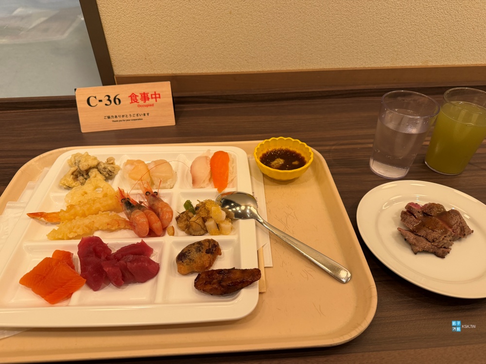 Buffet晚餐算普通而已,生魚片還行,但握壽司跟蝦子就失敗,另外有牛排跟pizza,還是可以吃蠻飽的。