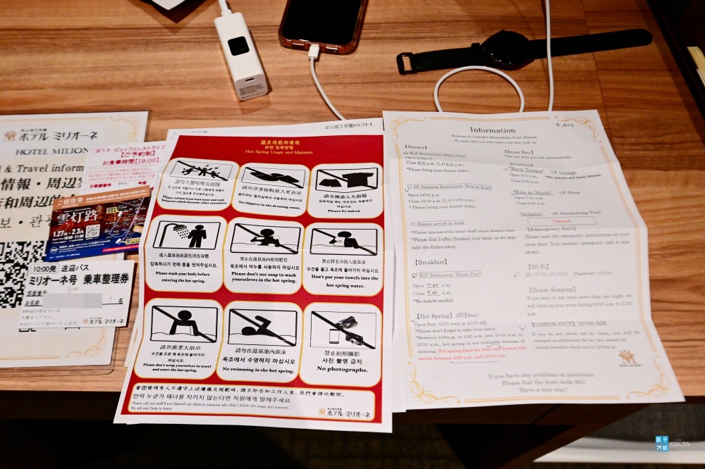 溫泉池在白天可以看到戶外雪景,雖然有柵欄隔著,但景色還算蠻漂亮的。不過這間的溫泉泉質我的皮膚倒是不太能適應,不知道為什麼泡起來就非常癢,會一直很想抓,看到評論也有日本人反應此現象。