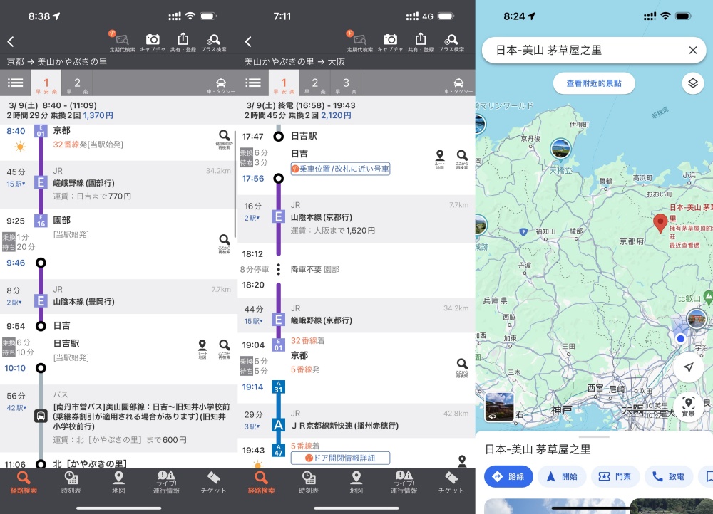 以上這段文字看起來好像沒什麼,但「京都」→「園部」就要45分車程,通常會在園部這站又等個一二十分,轉到「日吉」站是只要8分鐘。(補充:JR西日本 幾張Pass都可以到「日吉」站,包括 關西地區鐵路周遊券、關西廣域鐵路周遊券、關西北陸地區鐵路周遊券。)
