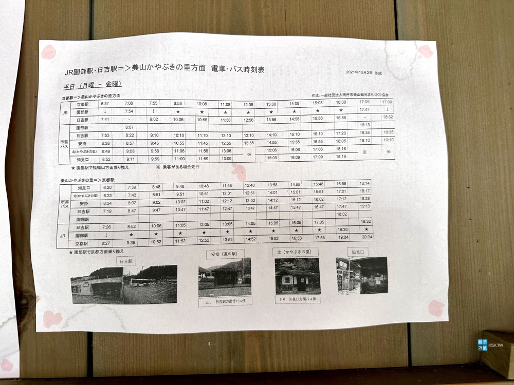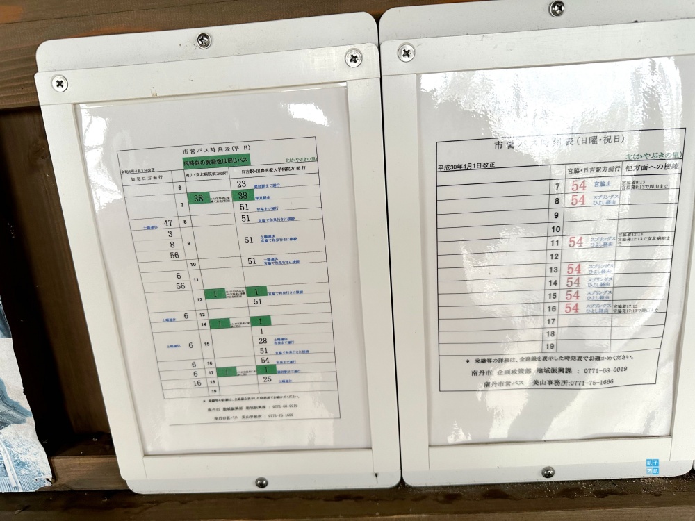 回程的話,美山かやぶきの里這邊也會貼有巴士時刻表可以參考,建議您一下車就先看一下時刻表確認。