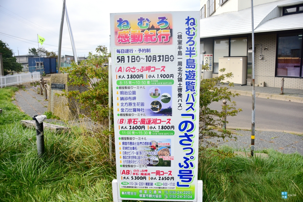 注意:2025年「のさっぷ号」這台遊覽巴士已不分AB路線,直接是早上11:10根室站出發的4小時40分行程,都會去納沙布岬,但會根據「道の駅スワン44ねむろ」是否休館而調整行程內容,原本可以選A/B路線的方案已經沒有了,也都不會前往花咲灯台車石了。