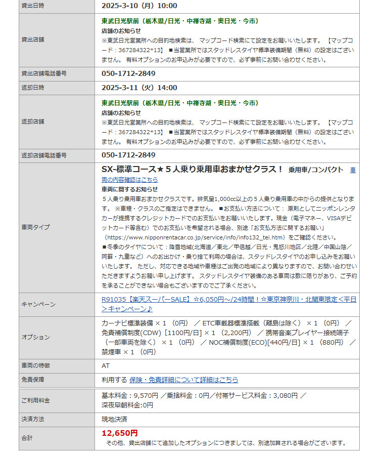 東武日光日光租車推薦:NIPPON RENTAL CAR租車