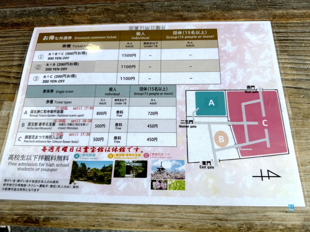 正確門票價格請參考官網 https://ninnaji.jp/visit/
