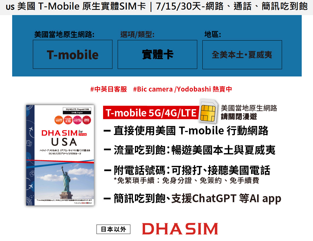 【NIPPON SIM】美國 T-Mobile 原生卡 團購