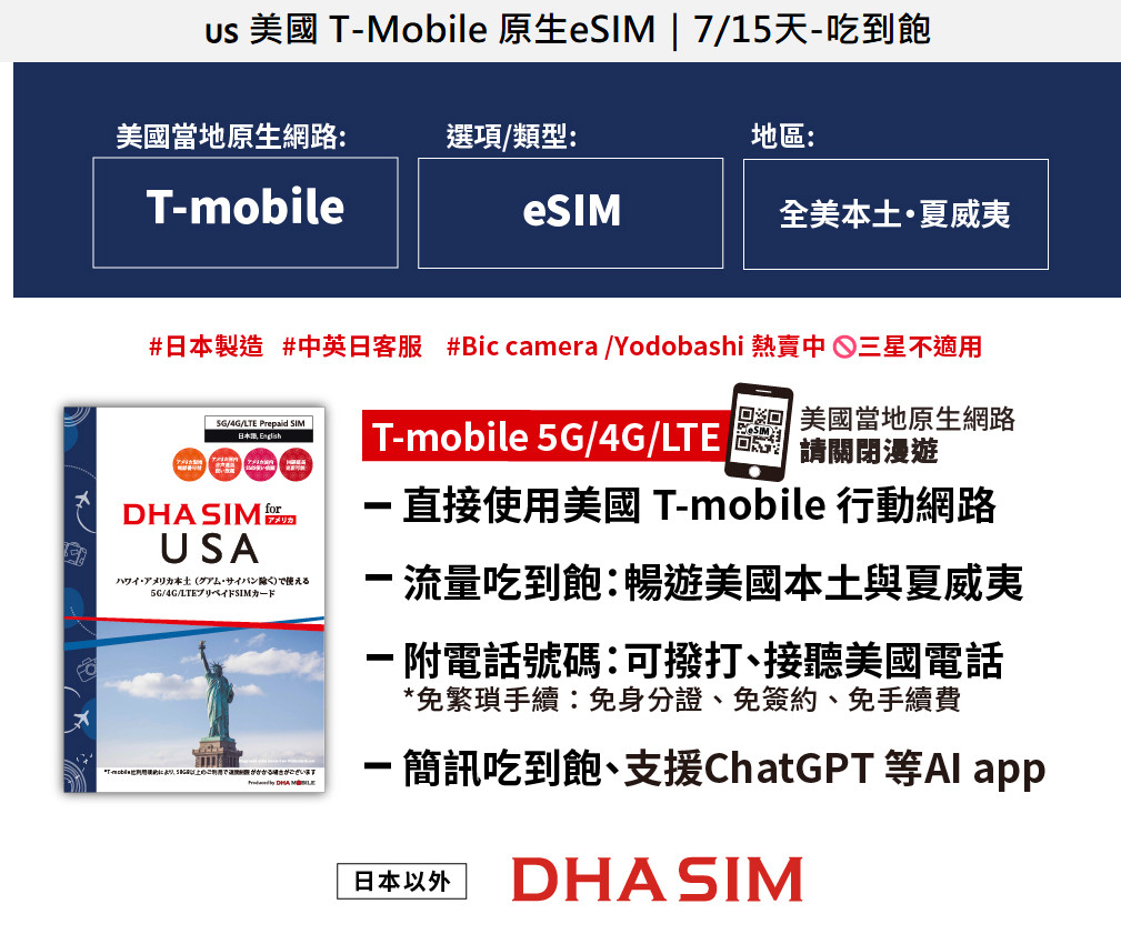 事實上,在日本現地可以看到的品牌是:『DHA SIM』。在日本各大量販店皆有販售多個國家的網卡,深受日本用戶信賴!這是來自日本的業者,最大的優勢就是可以拿到當地的原生卡。這次首度開團美國+日本網卡eSIM的商品!請大家多多支持啦!