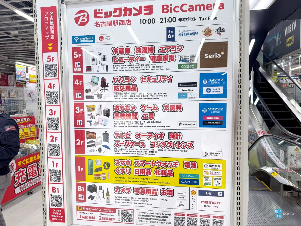 在日本Bic Camera電器,您要找網卡的話,通常是在手機那層或一樓就可以找到,像名古屋車站這間Bic Camera就有明確標示「SIM CARD」的字眼。