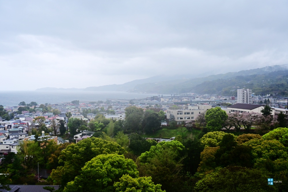 小田原城也是目前日本第七高的天守。登上天守,視野非常好,可以看到新幹線經過,可以清楚看到伊豆半島跟相模灣,實在覺得太酷了!挑個好天氣過來的話,肯定很美!