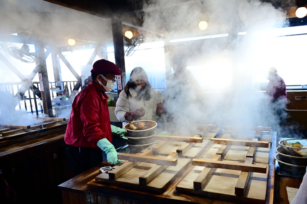 「鐵輪溫泉」這邊有幾個公共浴場可以泡,除了泡湯之外,最為人氣的就是「地獄蒸工房鐵輪」這間可以用溫泉高溫蒸氣來蒸煮大分縣食材的餐廳,營業時間通常都是滿滿前來用餐的旅客,可以自行體驗用蒸籠料理食材的樂趣。