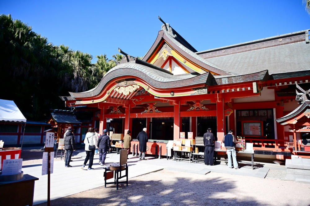 - 青島神社 – 座落於海島上的神社,必須走過長橋之後才能抵達,聽起來是不是就很酷呢!這是一個祈求開運與結緣相當有名的神社。這個景點其實交通相當方便,從JR「青島」車站步行過來即可抵達。在退潮時還可以欣賞到「鬼之洗衣板」的獨特景觀,感受大自然的奧秘。附近的海灘也是超人氣的衝浪勝地喔!