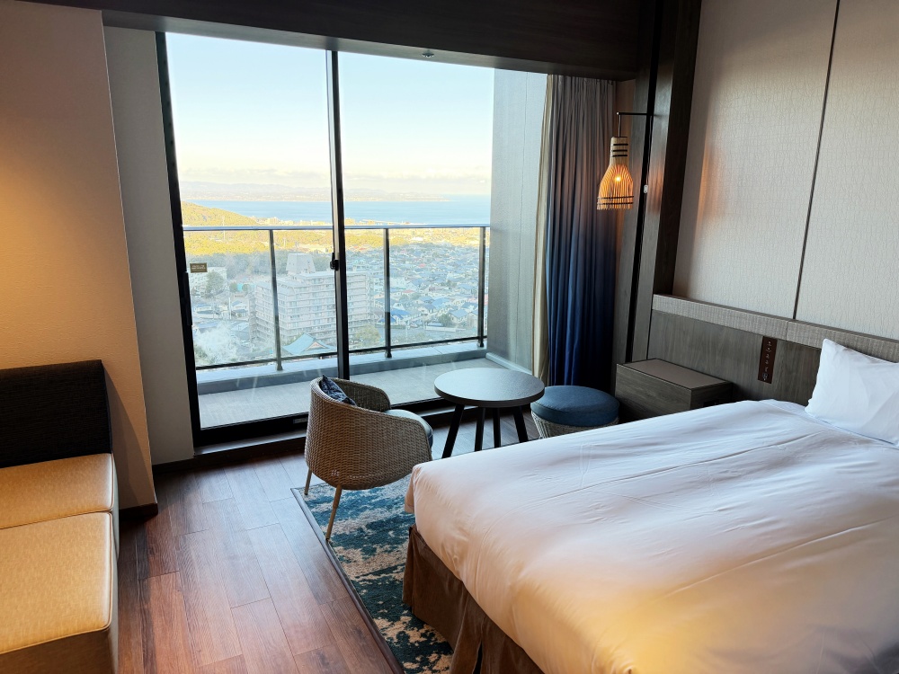 雖然這次訂的是海景房型,但比較可惜的是被安排較低的樓層,不過也還是可以欣賞到不錯的別府灣景色。房間裝潢較為簡單一些,整體的坪數空間是夠用的,房間氣味跟設備也都相當良好,日本的溫泉旅館住起來都是很令人感到放心的。景色方面,我覺得到兩個露天風呂池就可以欣賞到良好的視野,因此房間內的景觀我似乎沒那麼介意,入住這一晚的整體感受我已經是太滿意了。