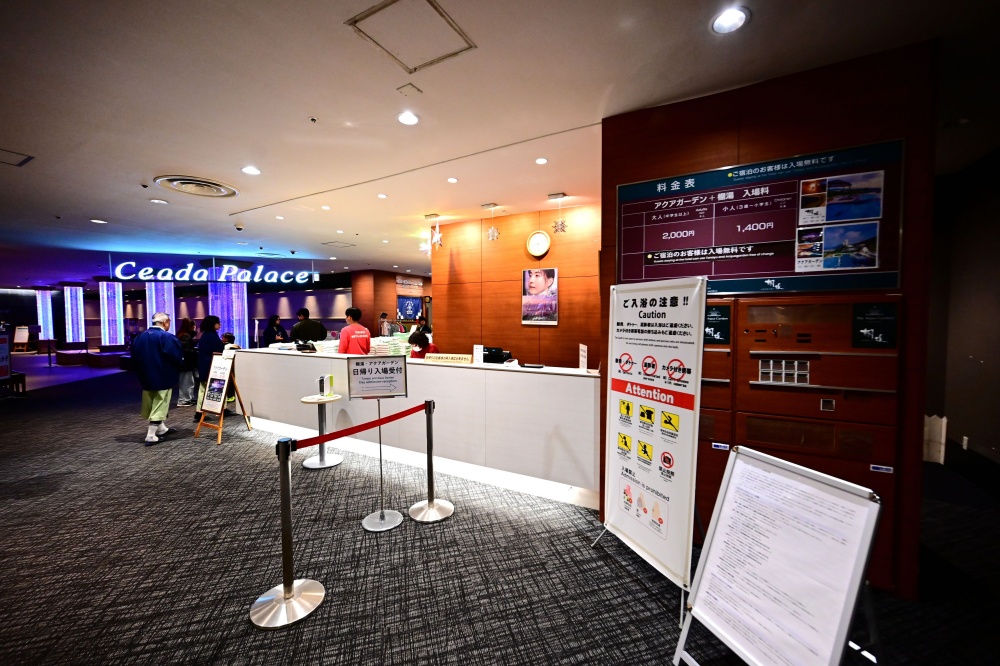不過稍微比較麻煩的是,從宙館走到位於「杉乃井 PALACE」的棚湯需要一段路程,但基本上從館內是都有走道可以連接的,沿路也都會有指示。「棚湯」入口的服務櫃台也會提供浴巾使用,而且棚湯的開放時間比較長,是從早晨開始到晚上24:00,另有提供給日歸入浴的旅也可前來使用。也因為杉乃井飯店的退房時間是到早上11:00之前,白天的話,您也可選擇在享用早餐前或後,找個時間再來泡一下。