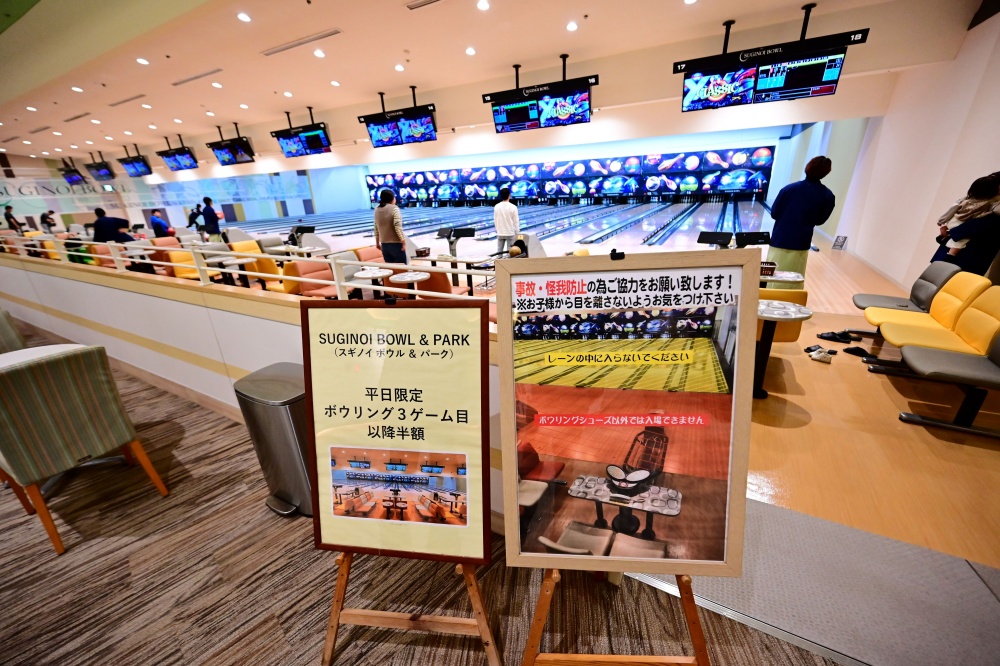 館內設施也是我入住日本飯店以來,覺得最大型的一間,包括扭蛋機、夾娃娃機、投籃機、桌球、保齡球、撞球、兒童遊樂設施、健身房、付費SPA按摩….等。您有看過在日本的溫泉飯店內竟然還有保齡球設施的嗎?真的有好幾道可以打,現場服務櫃台就可以租借保齡球鞋,而且打保齡球的每局價格也不會太貴,整體來說實在非常可以。