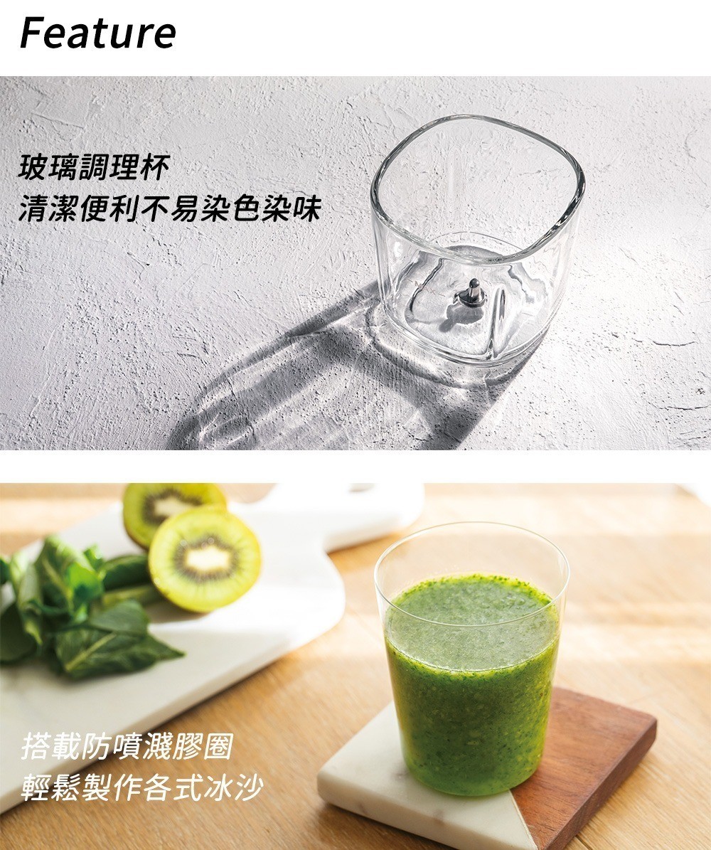 玻璃材質的調理杯,不易染色染味,大口徑~清洗方便,配件皆可拆卸水洗!
