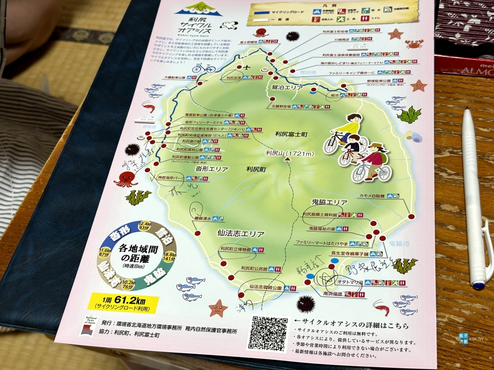 我就拿張地圖,將想去的地點圈起來,這樣就能規劃利尻島繞一圈的行程了!