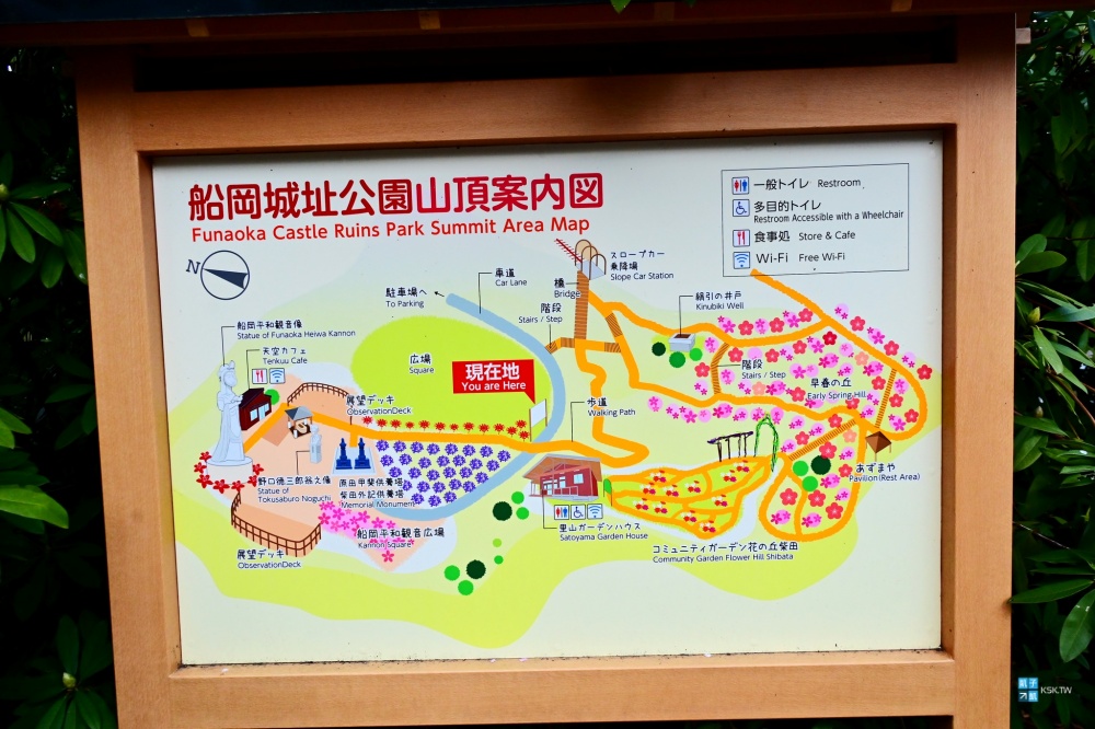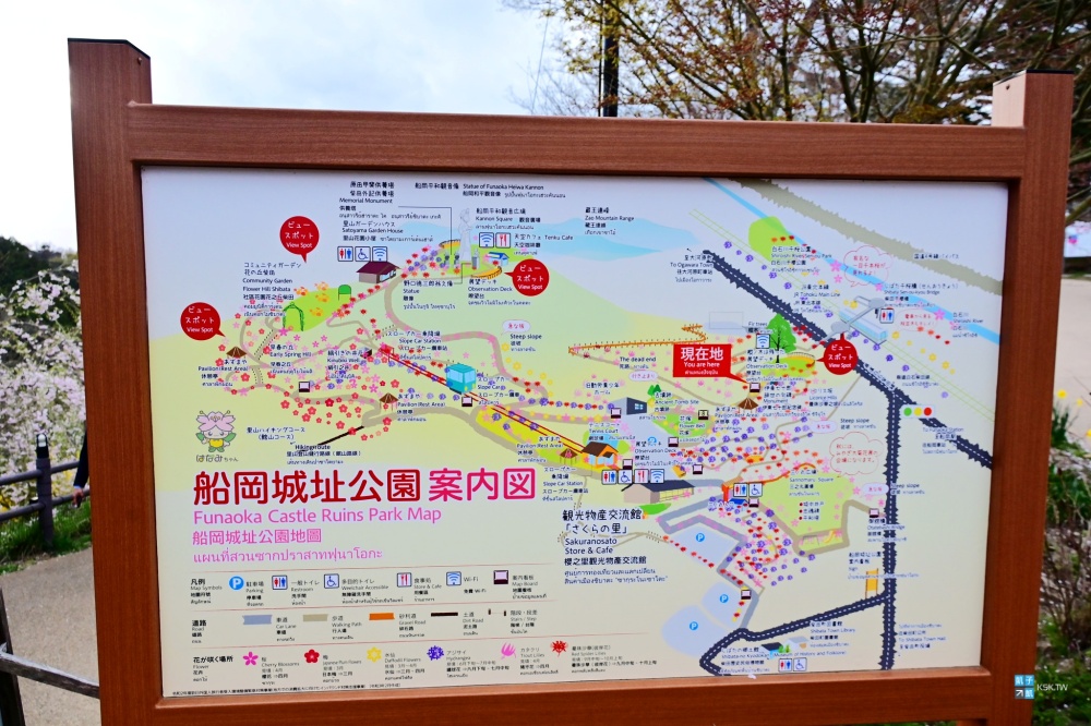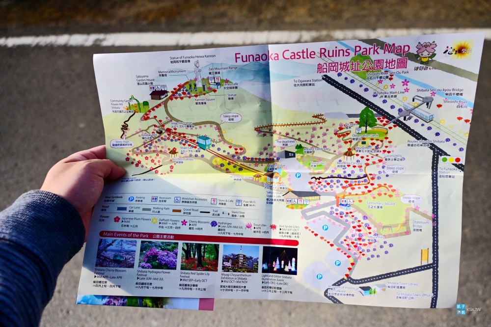 2026年還是有些可惜的點,這邊另一個重要絕景拍攝景點「韮神堰」從去年就在整修(從大河原車站徒步20分)。原本可以輕鬆搭到「船岡城址公園」的登山斜坡車 (Slope Car スロープカー)也因為設備老化而有更新計畫,預計2027年春天才會重新開放,所以您今年想要上去船岡城址公園,就必須靠雙腳了!坡會有點陡,會有點小累喔!