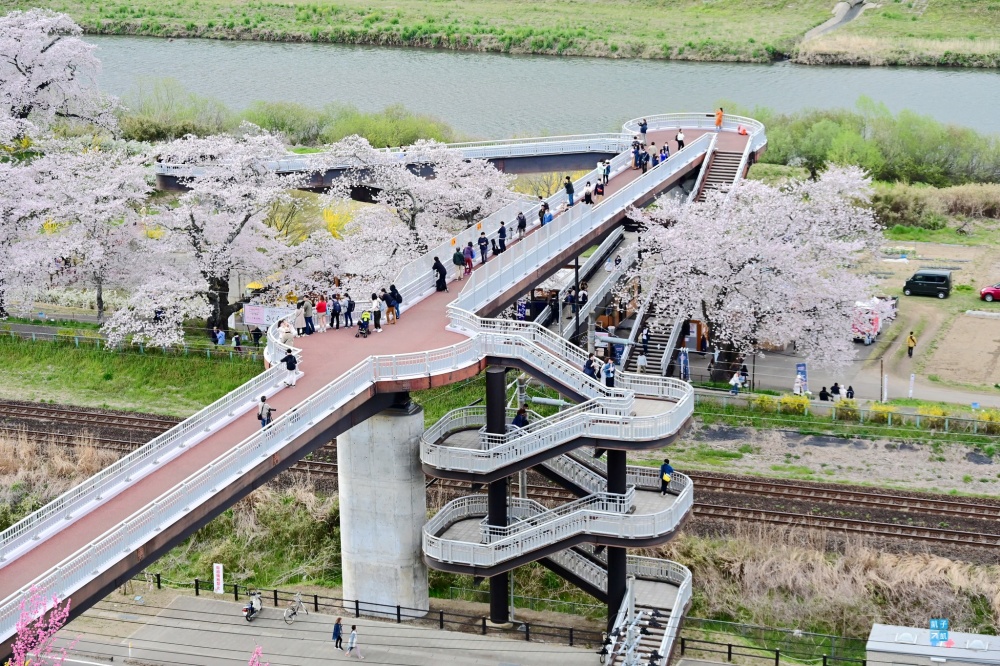 從千櫻橋慢慢步行至「大河原」車站就比較遠,大概要半小時以上,大河原町櫻花祭也是在這一側,途中會經過韮神堰。因此會比較建議您直接搭到JR「船岡」車站比較近。當然,您有時間可以完整走完「船岡~大河原」之間,慢慢欣賞這個櫻花百選之美,那更好!