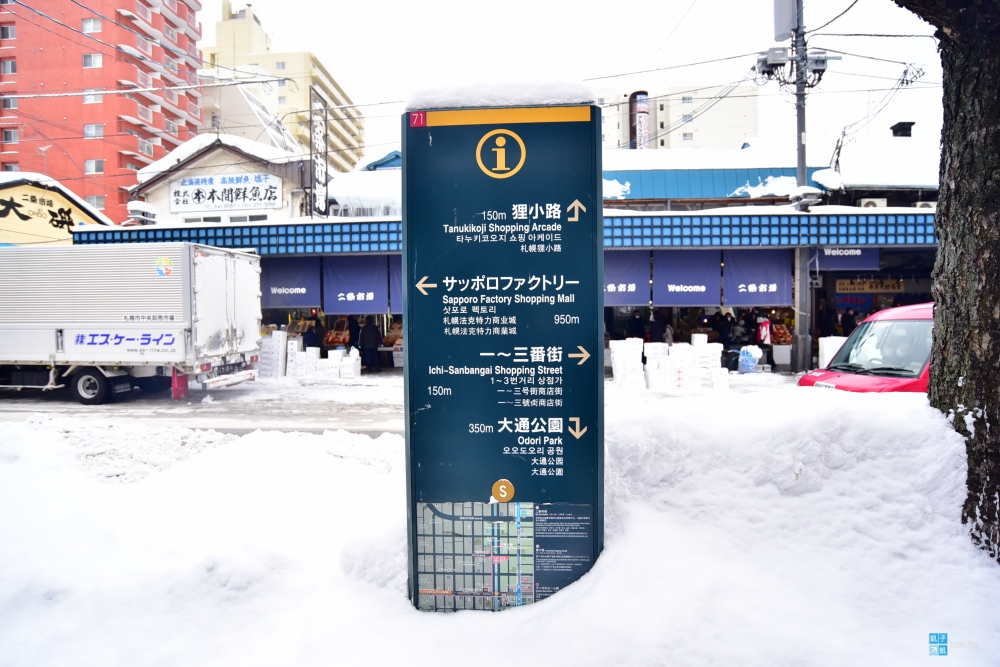 被白雪覆蓋的札幌市區真是美,從二條市場這邊走去札幌電視塔也不遠,在雪祭的時候或許可以考慮來這邊吃個午餐,再緩步走往雪祭會場的大通公園。