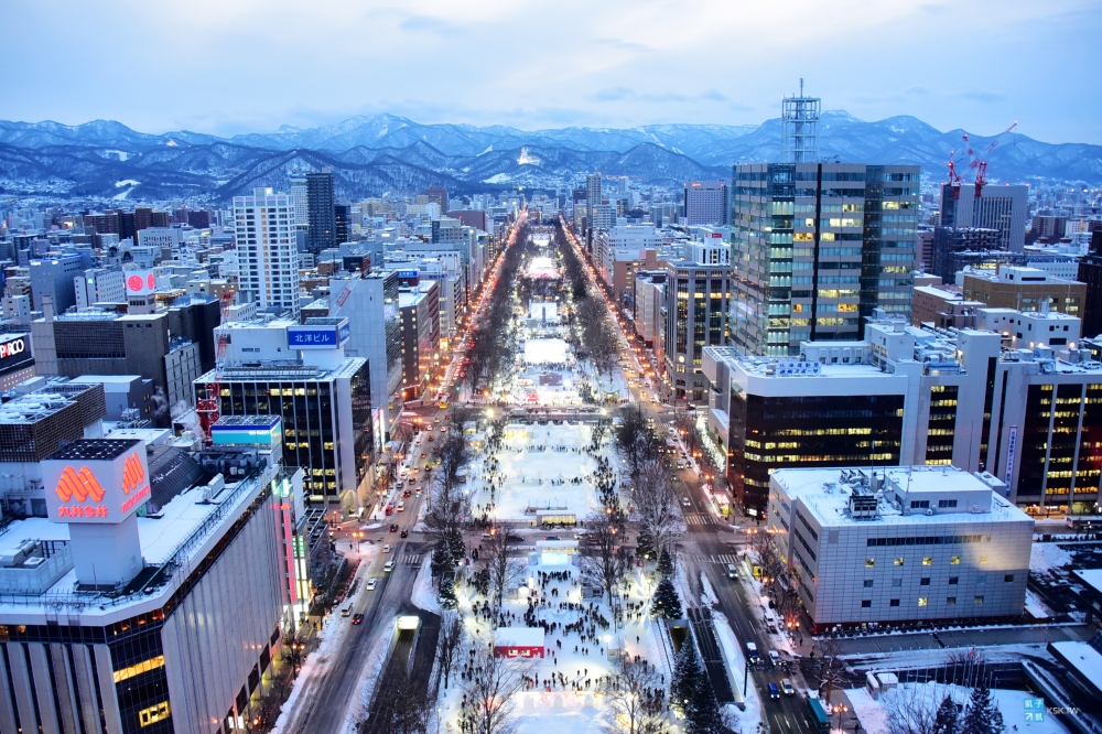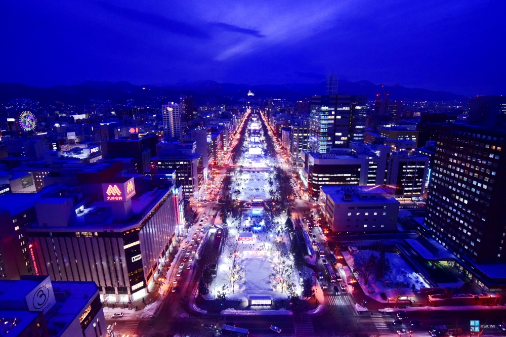 札幌是北海道最熱鬧的城市,雪祭的規模也是最大,因此算是外國旅客當中最有名氣的。主會場在「大通公園」,將會有相當多的雪像冰雕藝術作品呈現,一些舞台表演也會在這邊。傍晚時刻移動到札幌電視台上方,可欣賞到整個雪祭夜間點燈的景色。