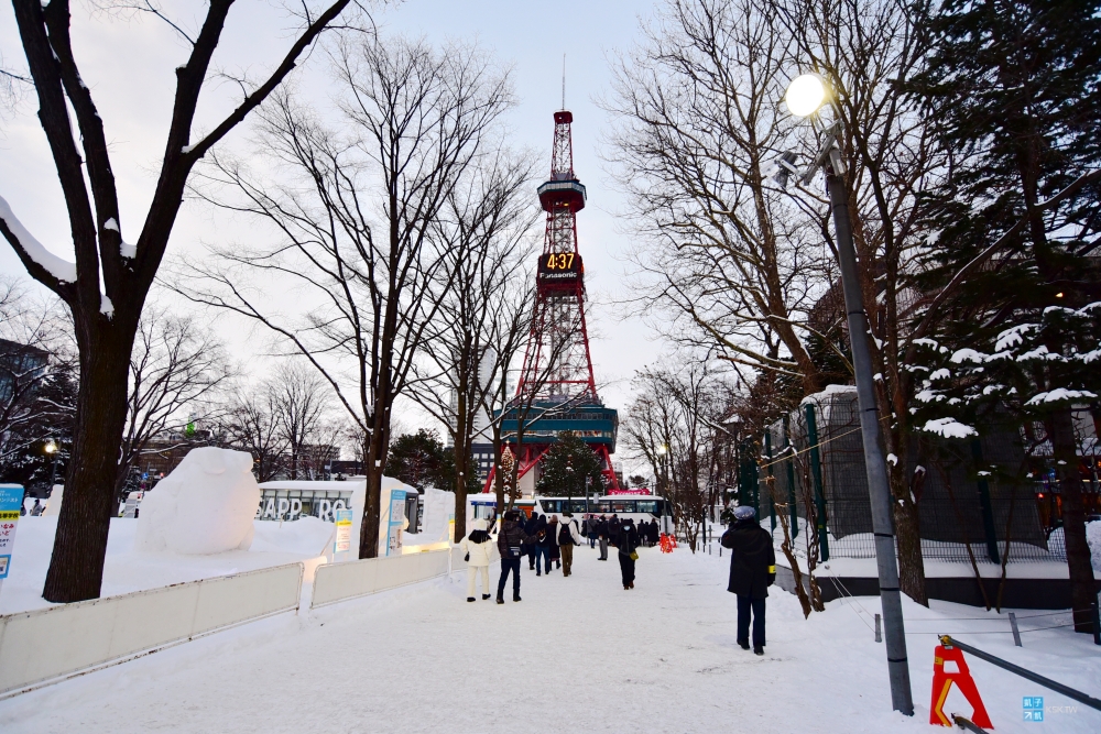 札幌雪祭的主會場通常都是在大通公園這邊,推薦接近傍晚的時候可以到「札幌電視塔」(さっぽろテレビ塔)欣賞大通公園雪祭會場的夜景,算是這邊最佳也是最人氣的展望台了。若依這個季節札幌在4:50PM就會日落的話,建議大概4點就要準備排隊入場了,甚至更早。