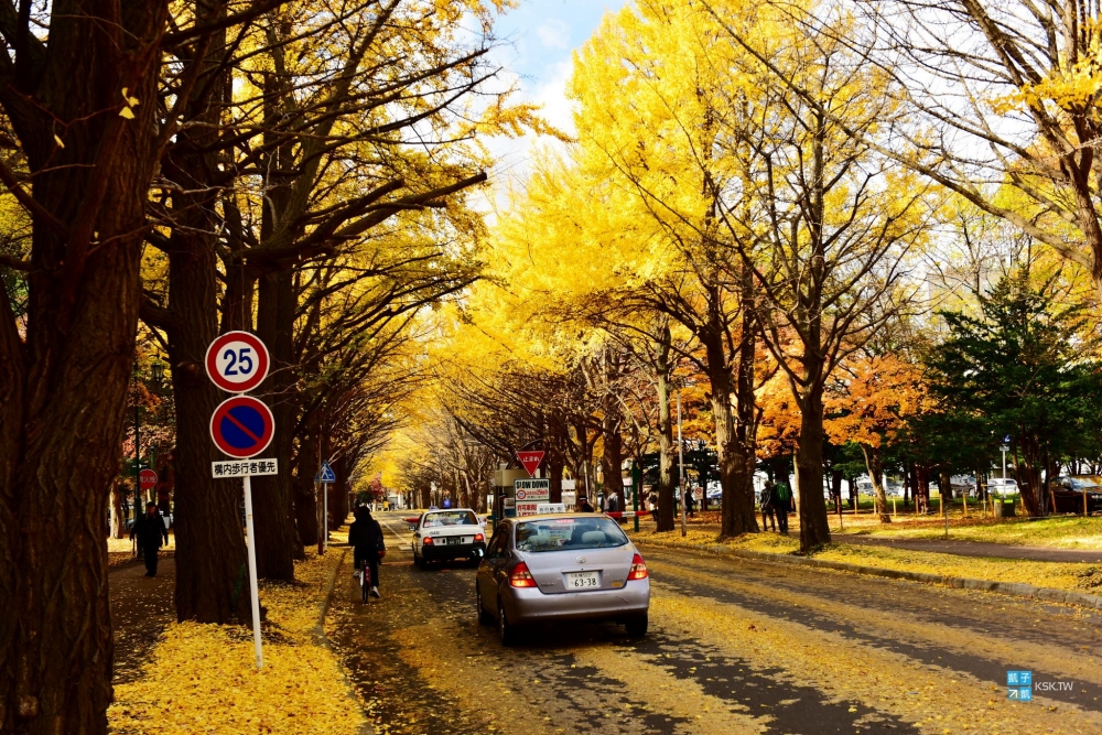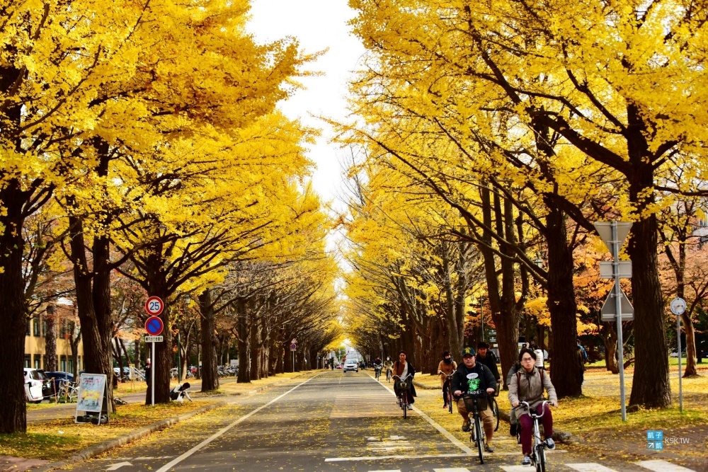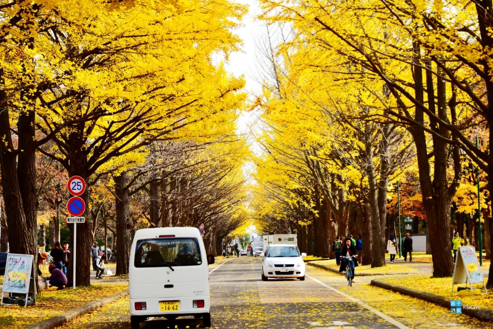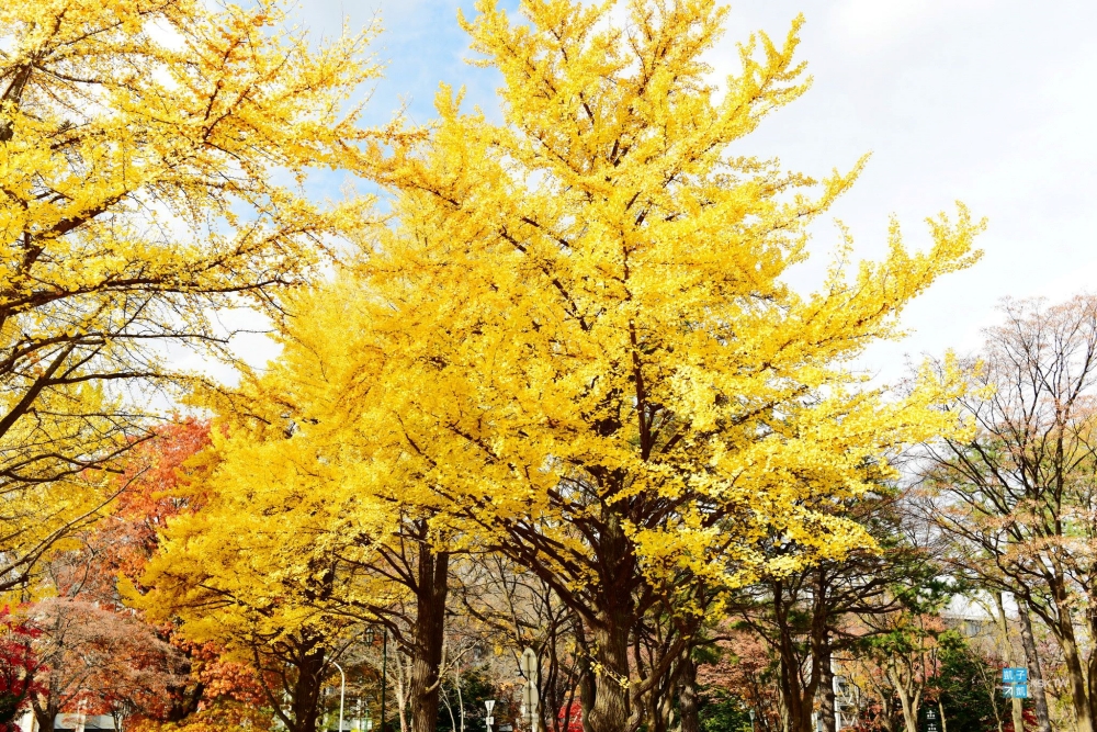 在10月底~11月初,整個札幌市區都是滿滿的銀杏,包括大通公園、中島公園。最為人氣的景點就是「北海道大學」的銀杏並木,每年見頃的時間點通常是落在10月底,因此北海道大學也會在最後一週的六日夜晚舉行金葉祭點燈。