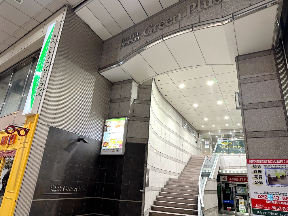 這間是仙台的Hotel Premium Green Plus飯店。如果您查仙台的住宿,應該很常查到一堆「Green」集團的飯店,算是這邊在地有歷史的連鎖品牌。普遍的評價都沒有到很高分,或許是因為飯店看起來確實都稍微老舊一點,但仔細找的話,也還是可以找到相對比較不錯的。(有些評價較差的就建議避開)