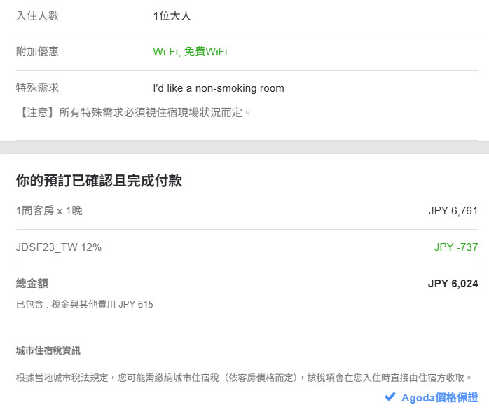 我住起來是覺得蠻乾淨的,只是覺得三人房實在太大間,我才一個人住突然覺得很不習慣….那時候在Agoda訂這晚才6,024円,算很便宜吧!
