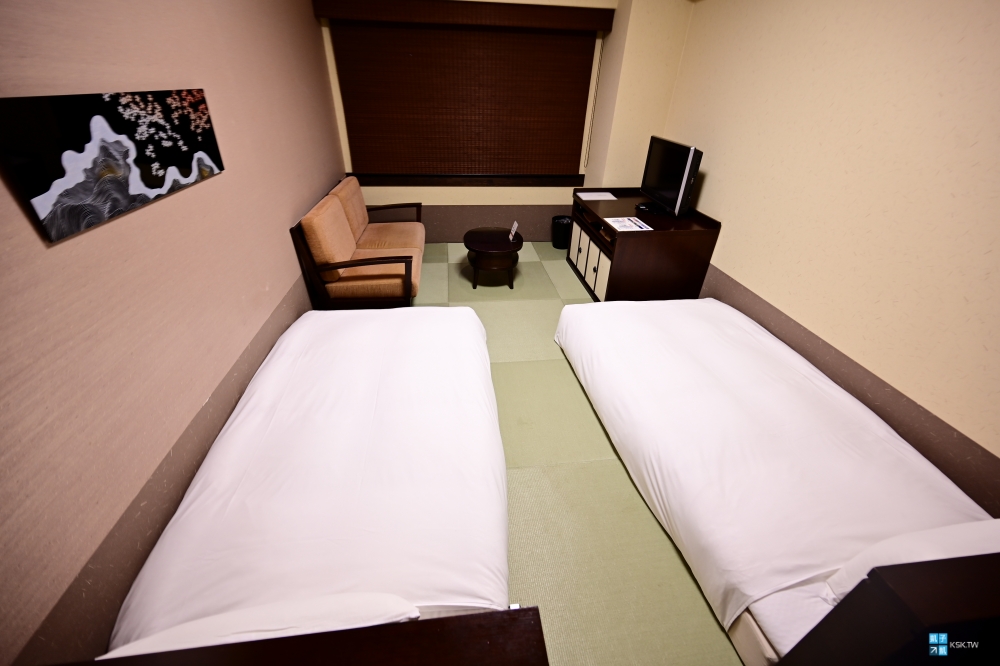 不過我們訂的應該是最簡單的「雙床」房型,空間大小跟床鋪實在不太行,房間硬體算是大輸「東急STAY飛驒高山結之湯」,而且我覺得清潔度沒有到很好,牆壁有蠻多髒污痕跡。