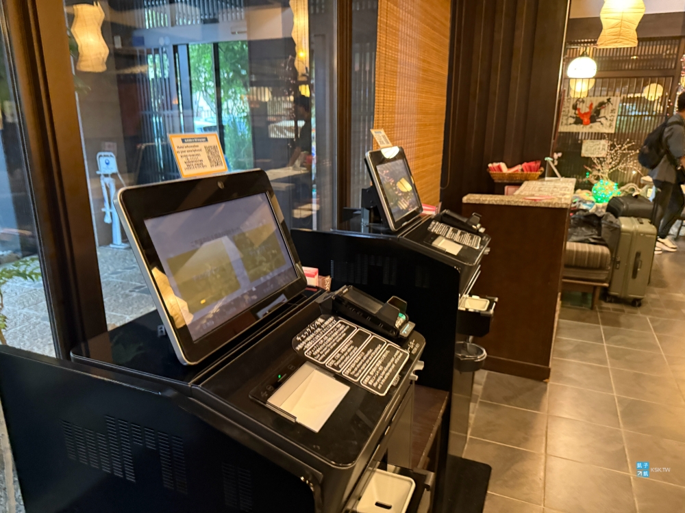 進入大廳會有服務員站在自助報到機器旁邊協助您,但我總覺得少了蠻多笑容的,沒有日式溫泉旅館的那種殷勤感,會讓人不禁覺得是不是這間太多外國旅客來住宿,服務員都累壞了呢?雖然是日式旅館的外觀,但整個內部給人的感覺還是很商務旅館吧!