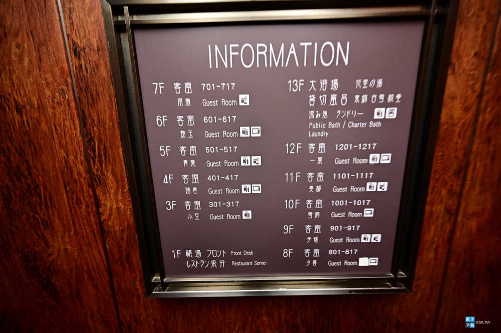 溫泉在13樓,除了大浴場之外,有三個「貸切風呂」可以免費使用,分別是可以容納2、3、4人的空間。這是先搶先贏,使用完之後就把門上的牌子翻到”空”那一面就可以了。(飯店的規定是每組客人使用30分鐘,所以就請大家盡量配合遵守一下了)