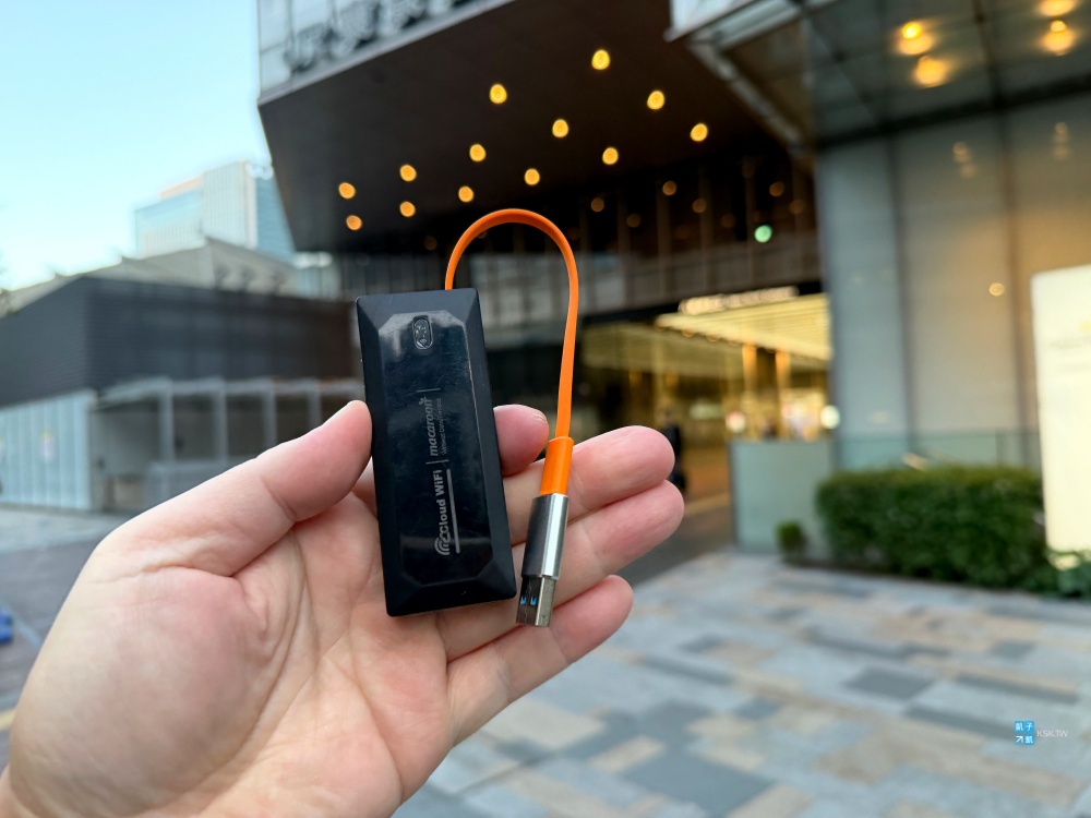 這顆的大小跟重量真的就比一般USB大一點點而已,非常輕巧,放在身上完全不是負擔,一定比一般WiFi機都還輕許多。