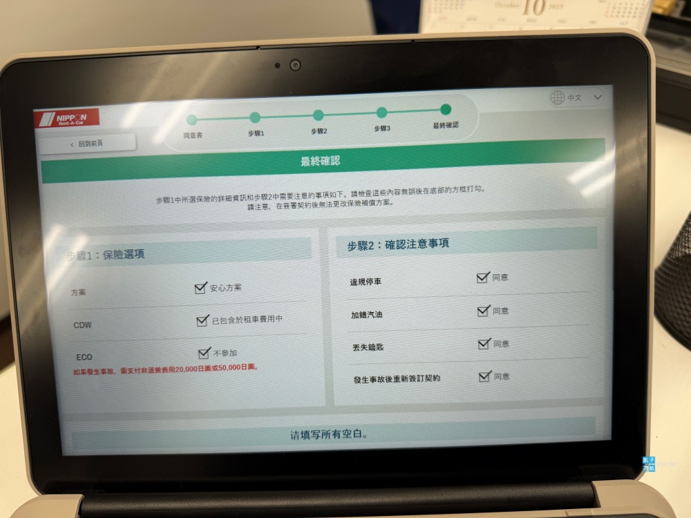 但在日本,租車是一件相當安心的事情,取車還車也都會有人員陪同檢查,因此我認為保險這方面直接跟TOCOO!加的話,也是可以的。