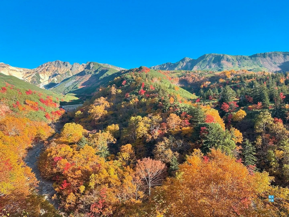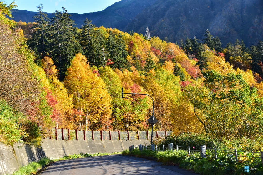 這個點可以安排從美瑛青池後續的行程,除了白鬚瀑布跟美瑛白金溫泉之外,您可以繼續往這間有秘湯燈籠的「凌雲閣」溫泉旅館前進。看完青池、白金溫泉,一路再往山上開,這段路紅葉黃葉都變色了,很美!