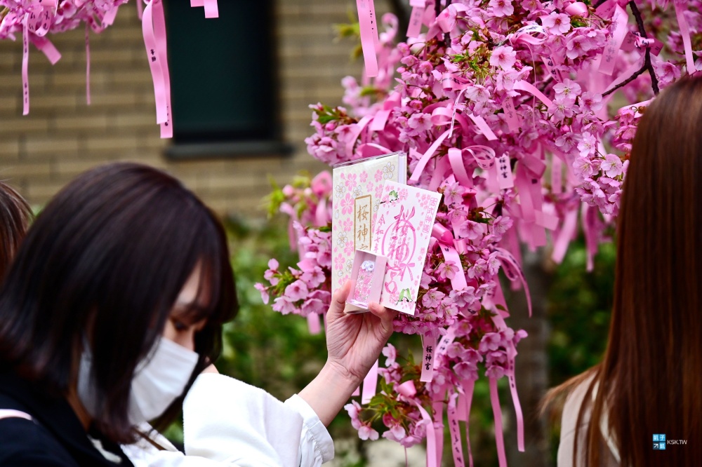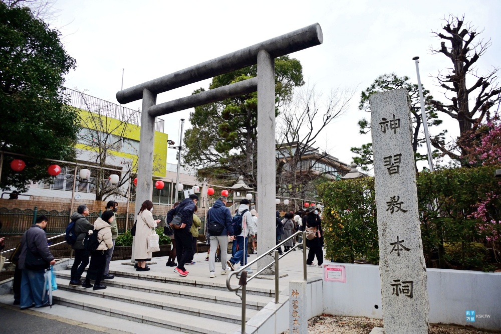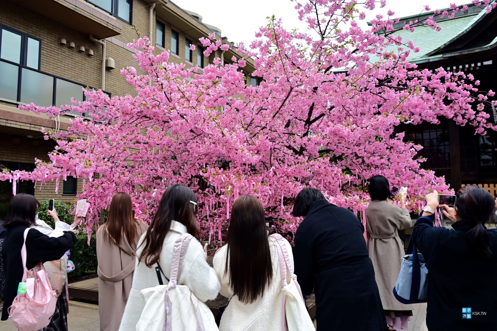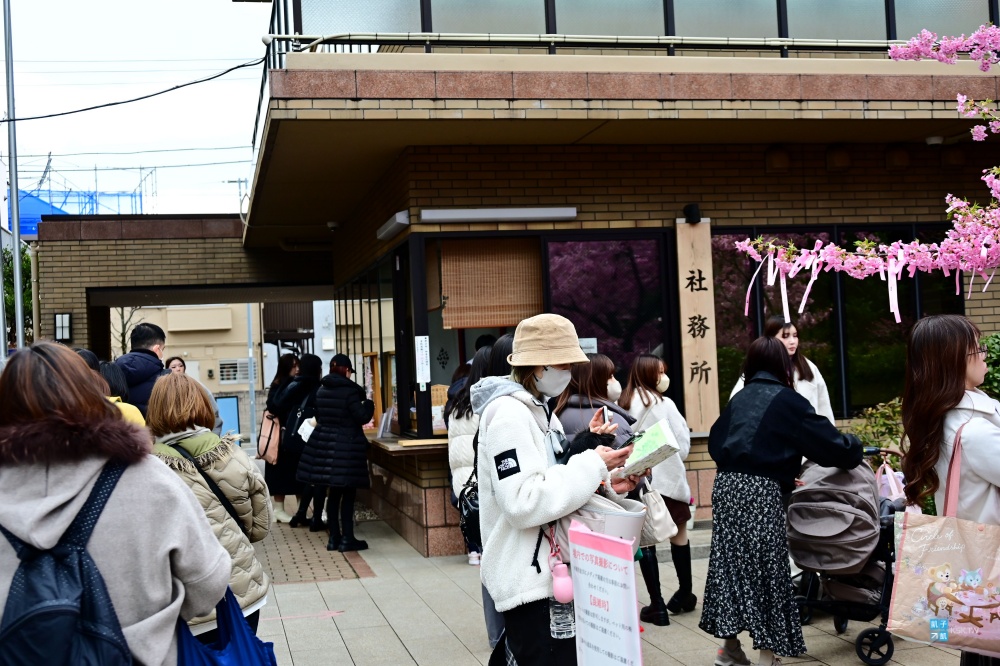 其實這個神宮非常小,主要就前面這兩株河津櫻,不過這裡在二月底三月初也都是非常超人氣的,現場滿滿排隊人潮,通常是為了櫻花季限定的超美御朱印而來的!