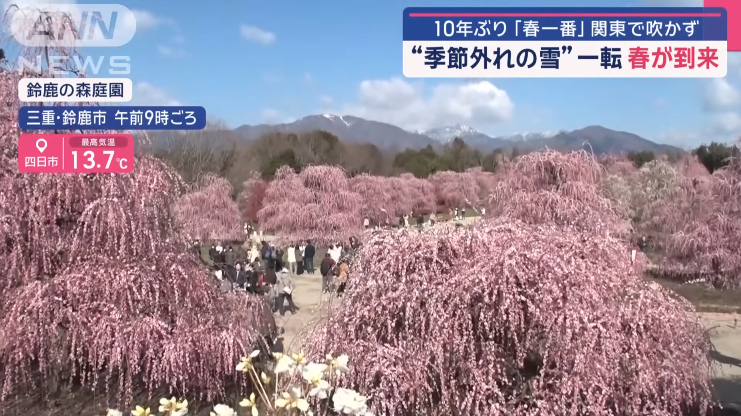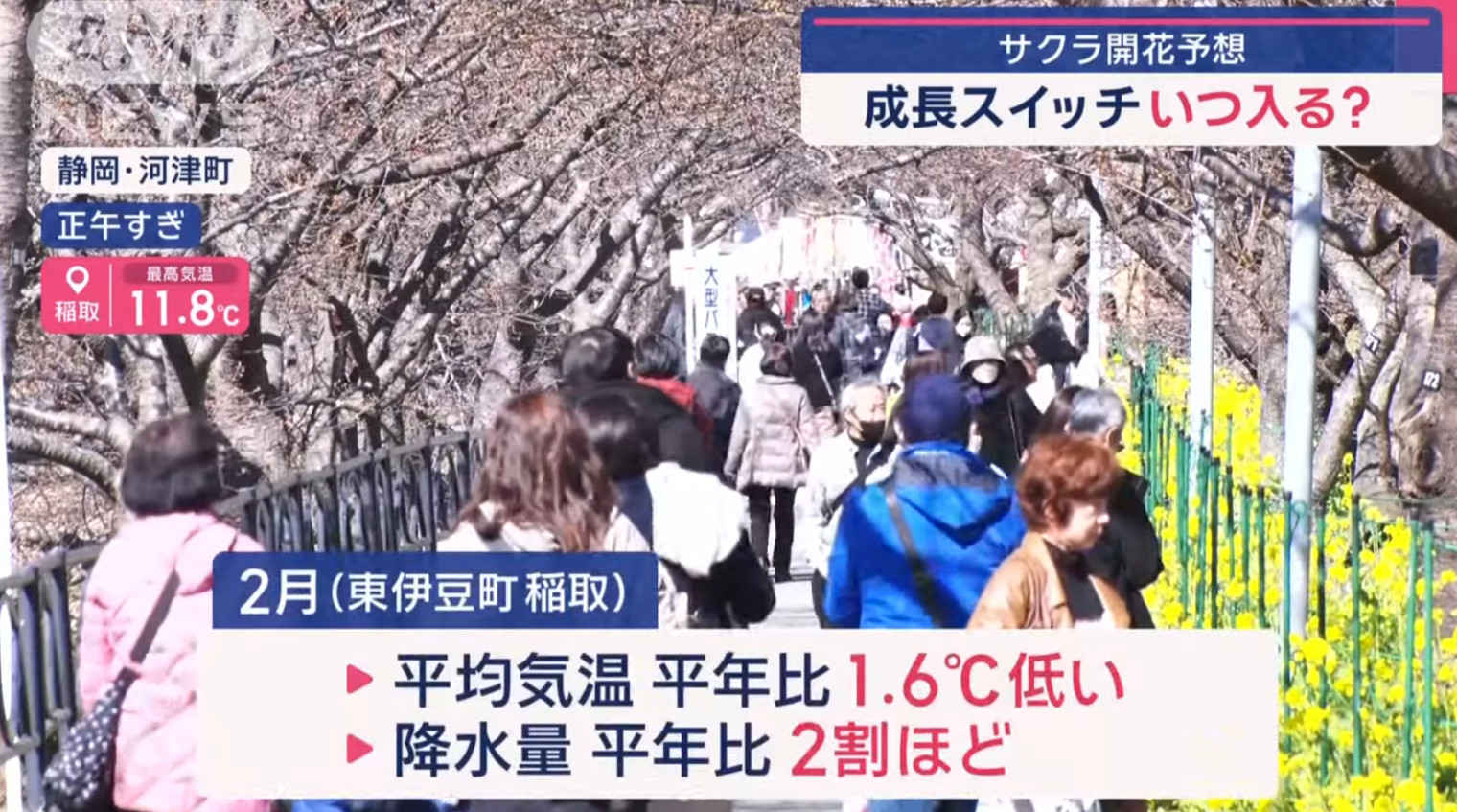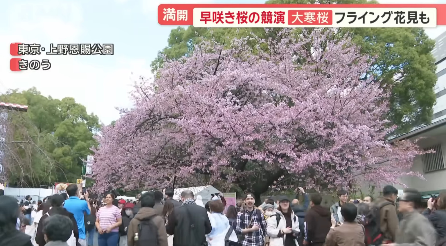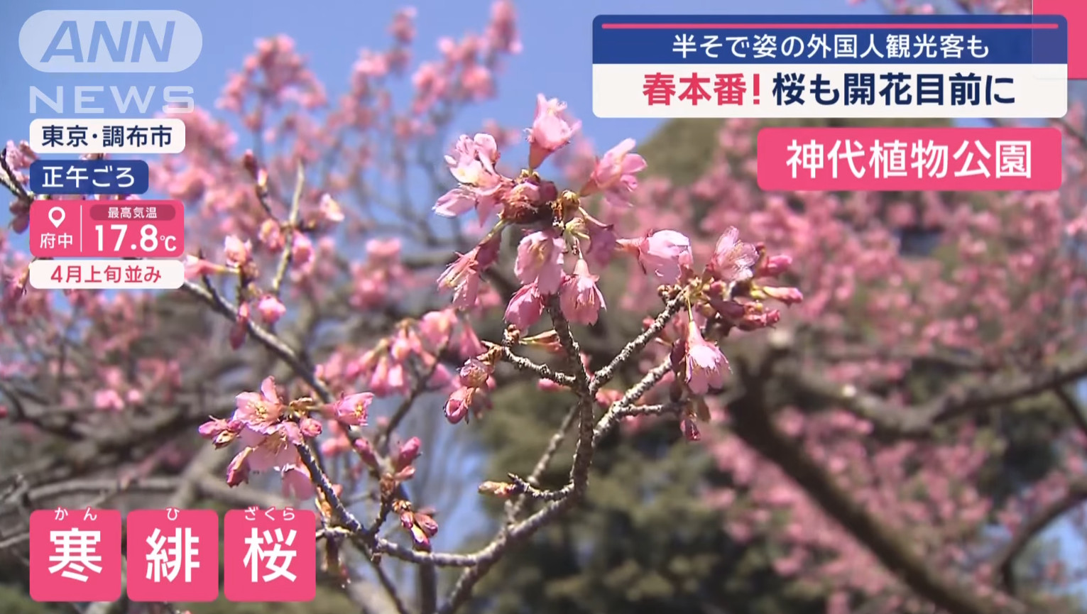 也由於櫻花品種非常多,日本新聞介紹了相當多早開品種的賞櫻景點可以跑,除了較知名上野公園、隅田公園、SKYTREE的河津櫻之外,東京汐入公園大寒櫻、港區南櫻公園、調布市神代植物園的寒緋櫻、神奈川縣南足柄市一ノ堰ハラネ的「春めき」、 靜岡富士本宮大社也有「春めき」此櫻種、埼玉久喜市長達2.5公里的河津櫻(進入尾聲)、昭和紀念公園(寒緋櫻、修善寺寒櫻、河津櫻滿開)、栃木縣宇都宮城址公園河津櫻、三重鈴鹿之森庭園垂枝梅….等賞花景點。