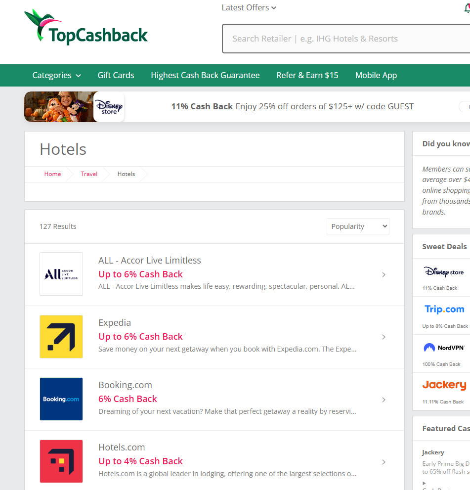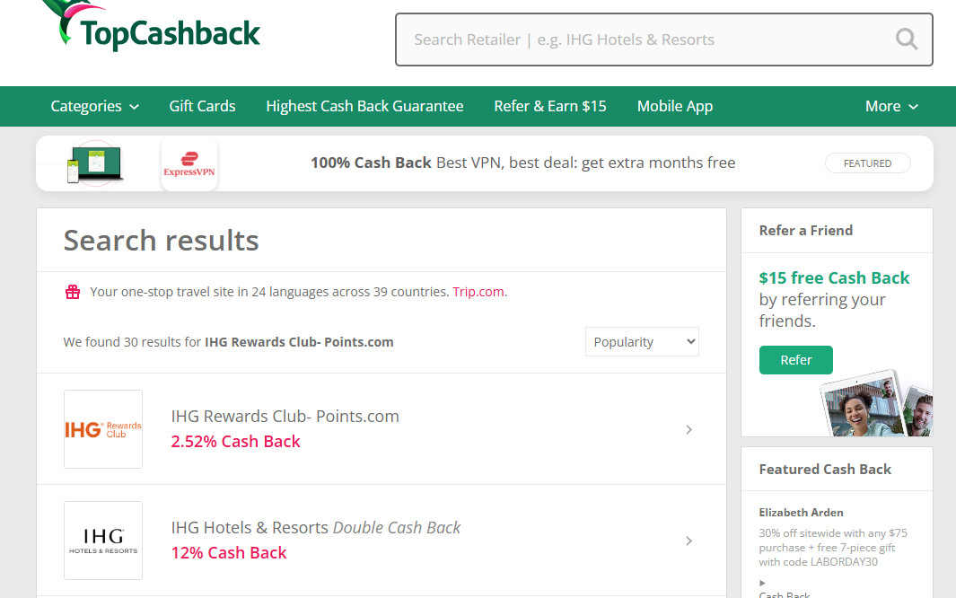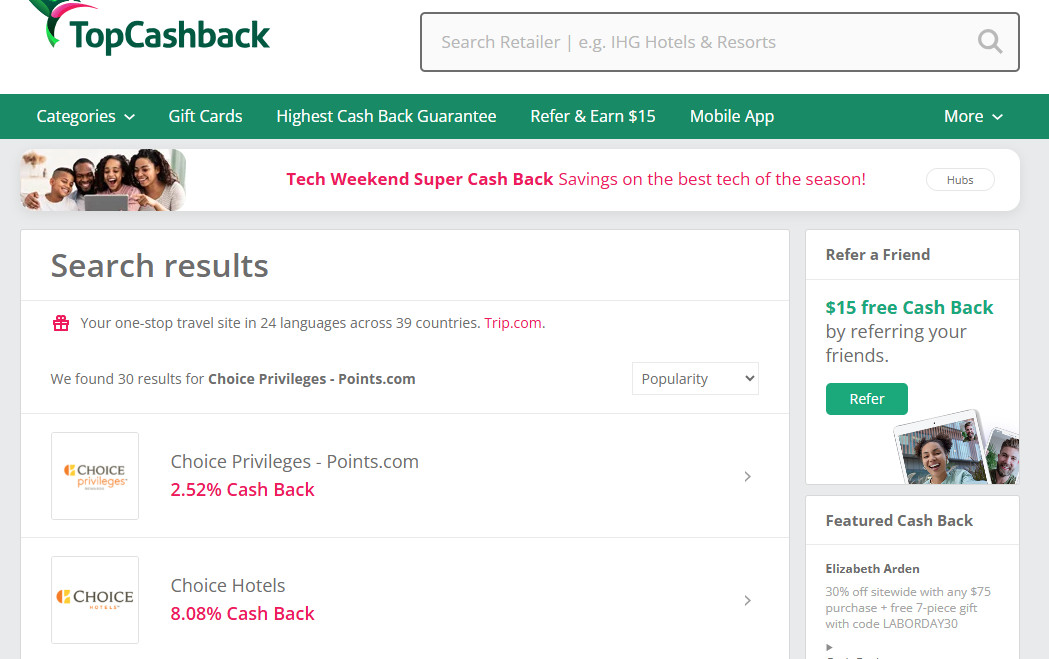 TopCashback是一個旅遊常會用到的現金回饋網站,像是如果您會趁促銷時購入Choice、IHG的點數,都可以考慮順便賺一下回饋。這種返利網的導購,對大家來說應該不是太大問題,就是類似Shopback或LINE旅遊那樣的操作方式。