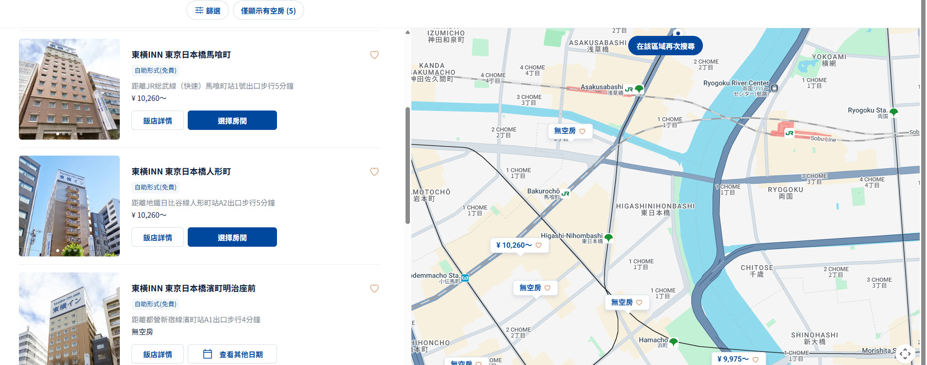明明就是在隔壁站,算是同一區域,但就是被劃分到不同選項,這是大家在東橫INN官網訂房時要稍微注意一下的。