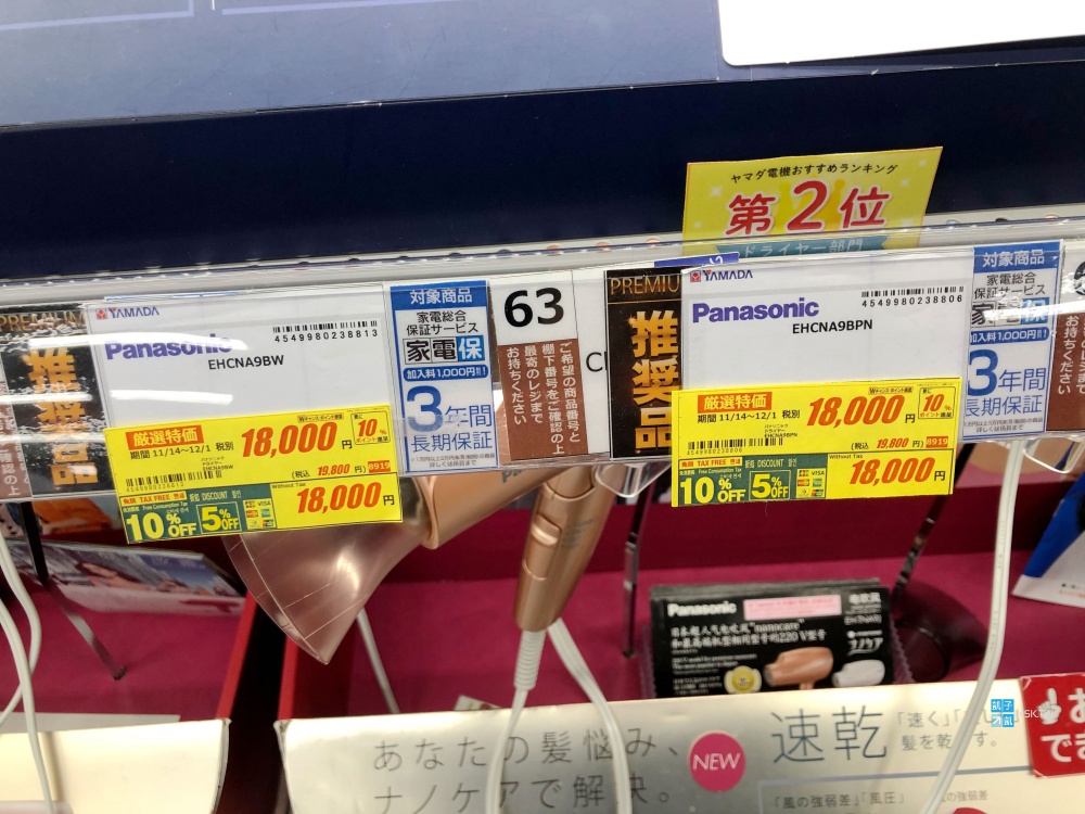 說明:iPhone等Apple商品、Switch遊戲機、Panasonic的高價美容家電(如美容儀或高階吹風機),這些在日本是被要求為統一價格販售,避免削價競爭、也要預防不肖人士轉賣的行為,因此大部分連鎖店家都是只能給外國旅客免稅10%,而無法再使用任何優惠券去折抵7%。(您還是可以免稅10%,Panasonic中階入門的吹風機還是可以享折扣~)