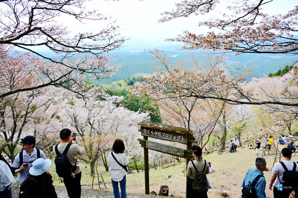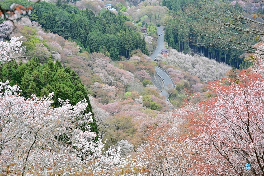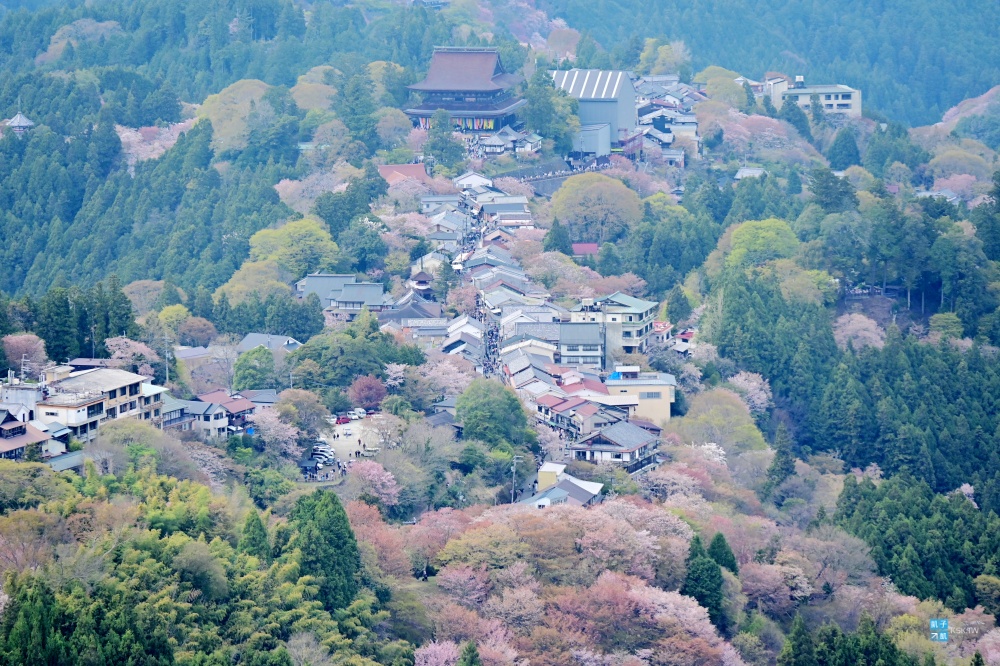 這個「一目千本」的絕景拍攝位置是在「吉水神社」旁邊(中千本),可以拍到的畫面就如下圖所示,真的就是看一眼看過去、彷彿看到千本櫻花的絕景(其實搞不好有萬本之多~~吉野山的櫻花數量實在太多)。
