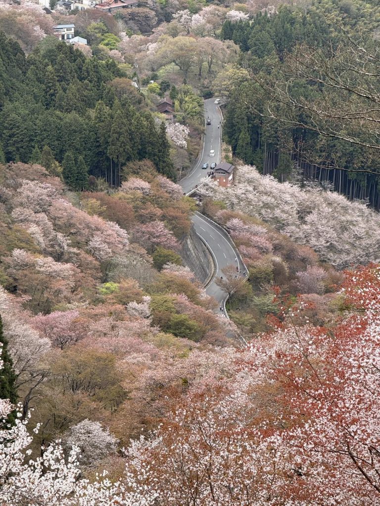 由於這邊屬於上千本地區,往下看就是中千本的區域,因此我猜測等到中千本、上千本櫻況最佳時,算是吉野山最適合的賞櫻期。此時的下千本當然是比較過見頃了!